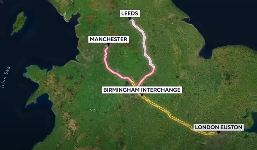 HS2, the UK’s ambitious high-speed rail network linking London with Birmingham (Interchange), Manchester and Leeds.