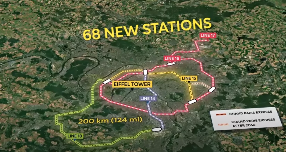 The new lines will fully integrate the Charles de Gaulle and Orly airports, as well as Paris’s vast suburbs, with the city center.